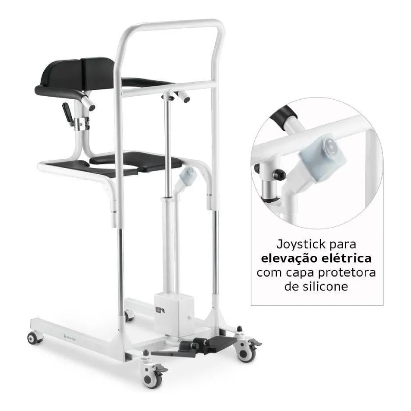 Conta com sistema elétrico que levanta e abaixa a cadeira facilitando a rotina do cuidador
